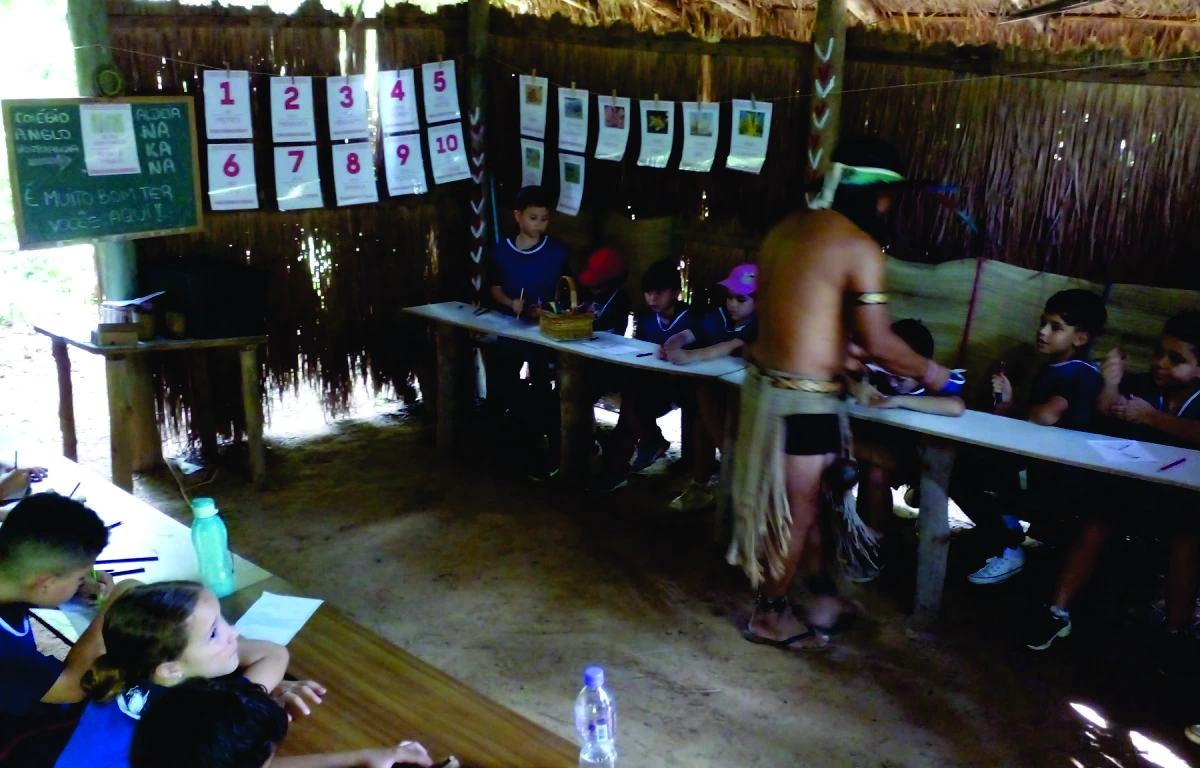 Caminhadas e atividades ao ar livre, explorando o ambiente natural e aprendendo sobre a relação dos indígenas com a natureza.