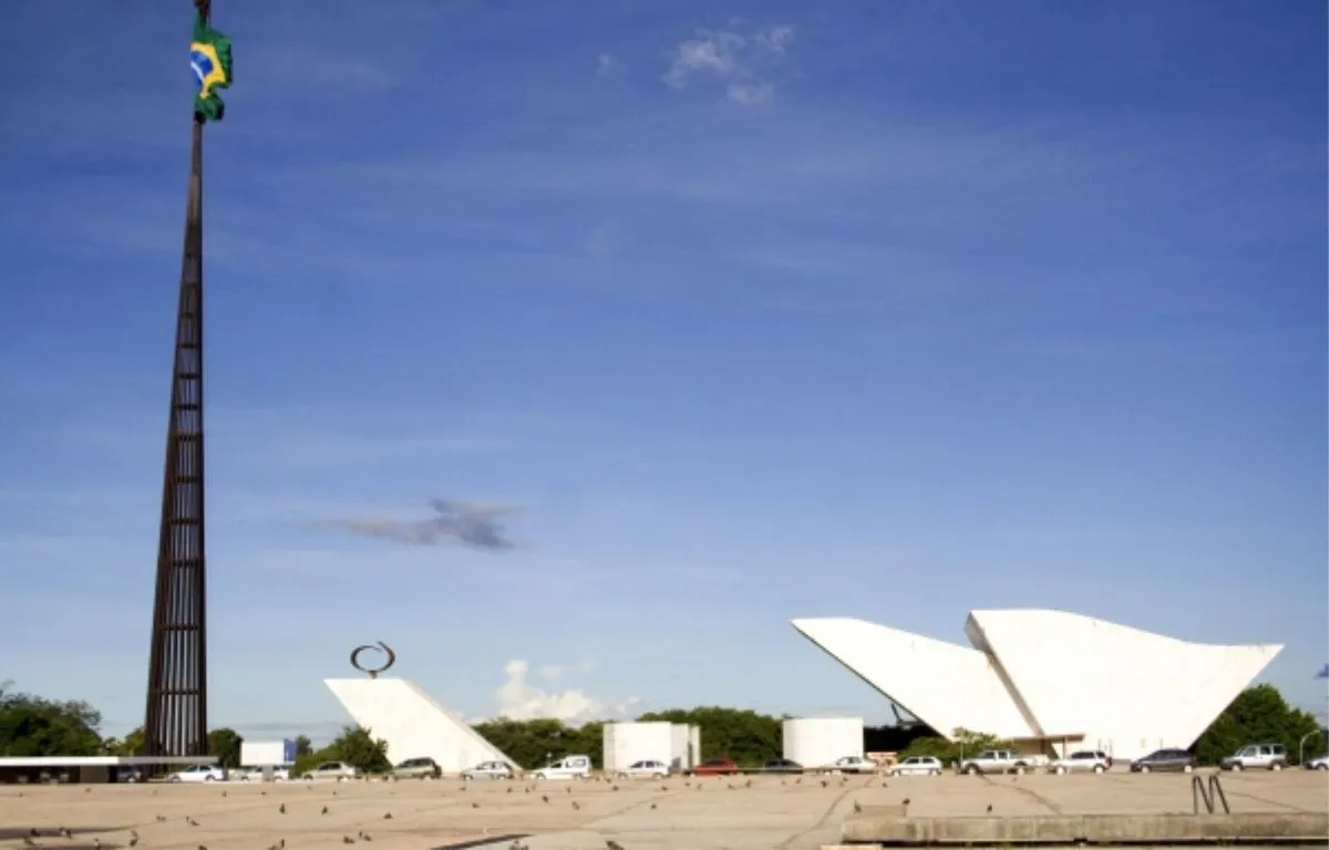 Leitura cívica e arquitetônica: funções dos poderes, símbolos nacionais e paisagem moderna de Brasília.