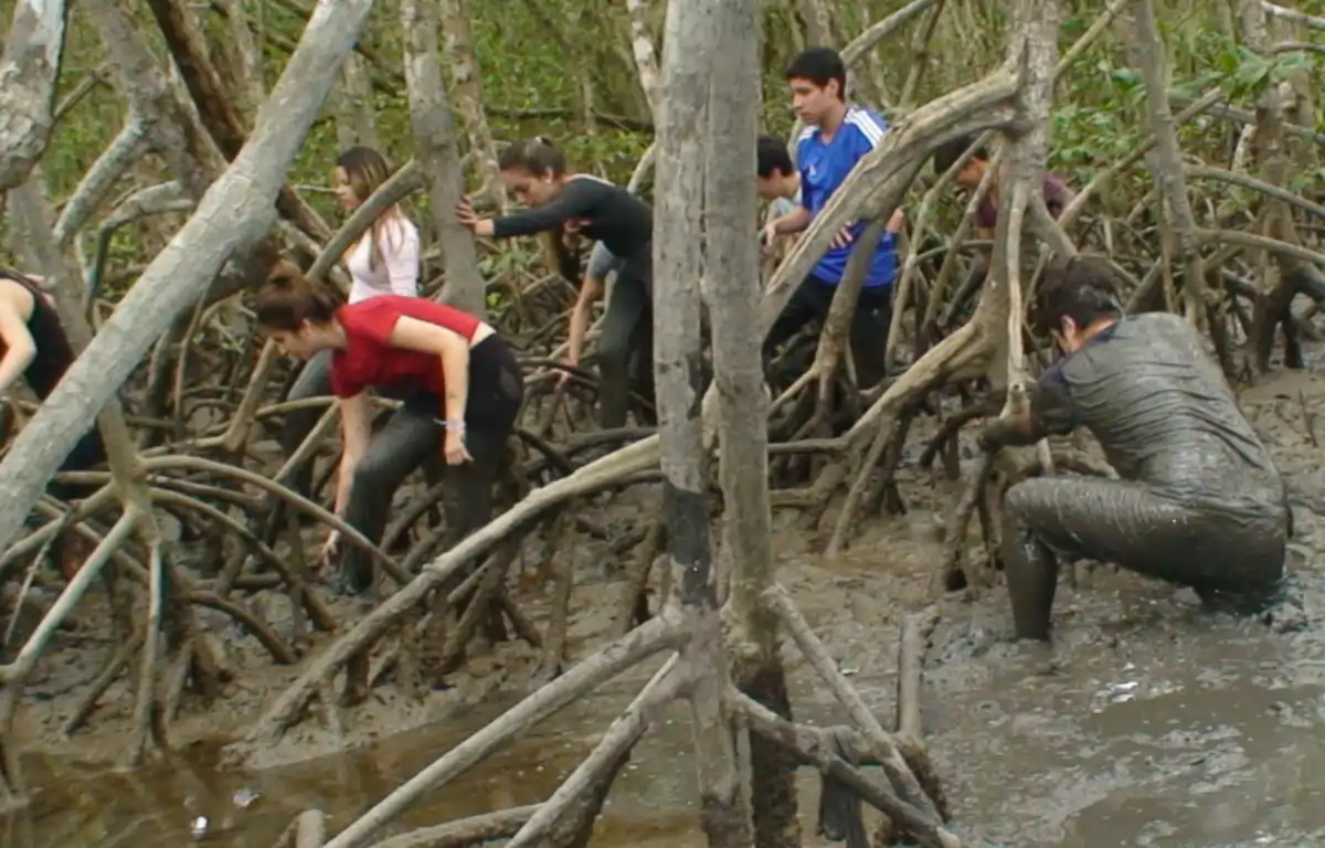 Restinga, manguezal e coleta de dados simples (salinidade, temperatura, pH).