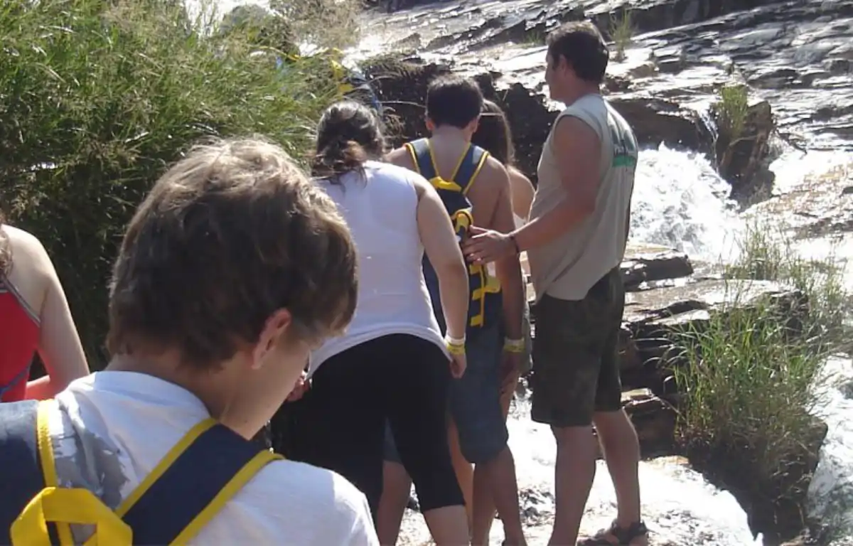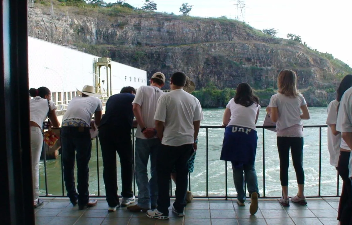 Barragem, vertedouro e casa de força (mediante protocolos); segurança, EPI e conversa educativa.