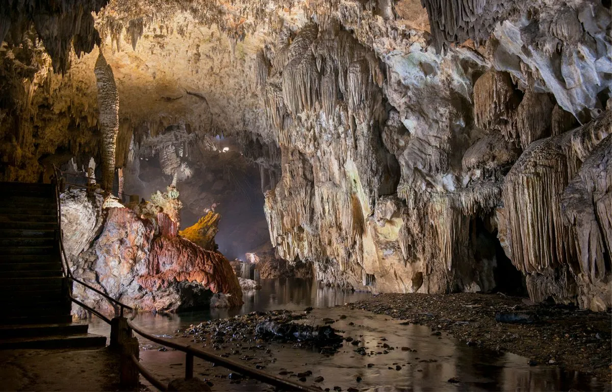 Mediação sobre formação de espeleotemas, dinâmica hídrica e regras de conservação; percurso definido conforme autorização do parque.