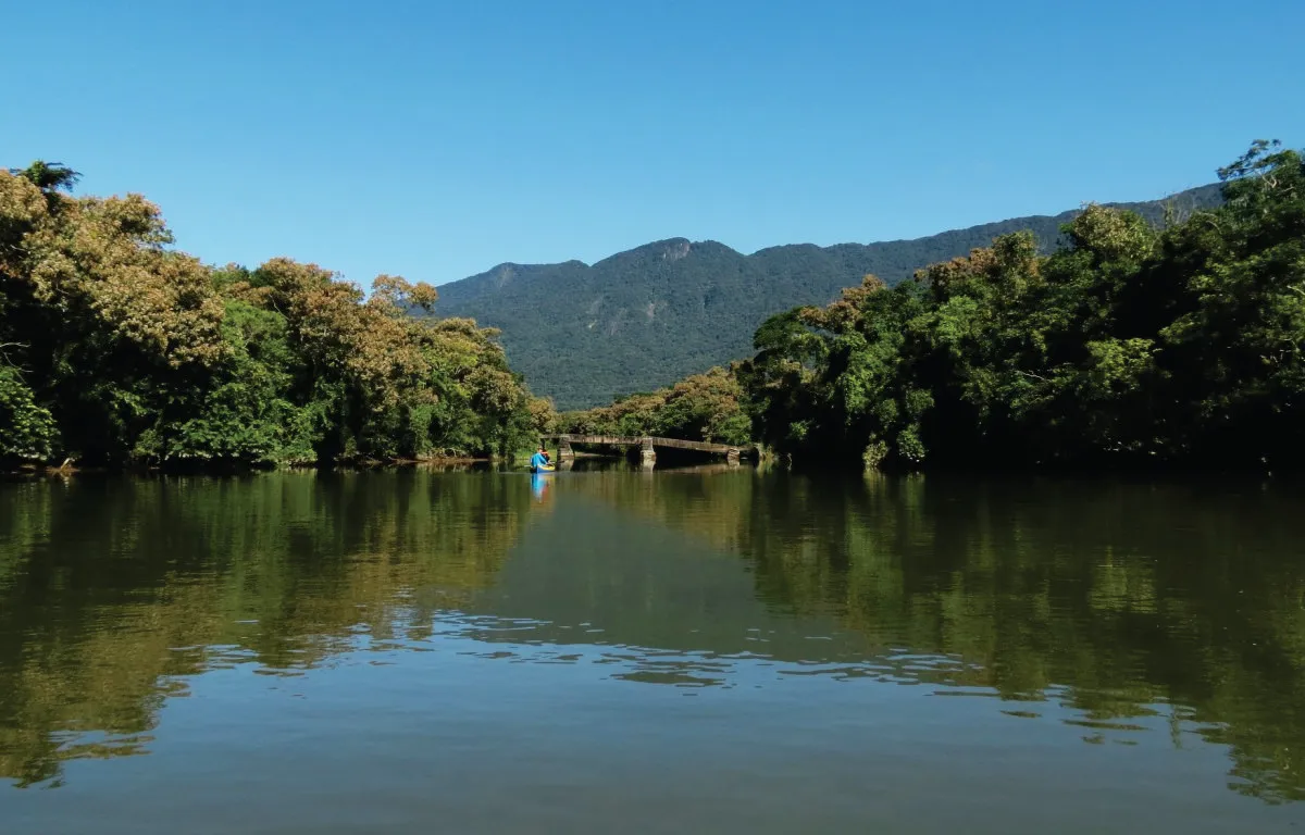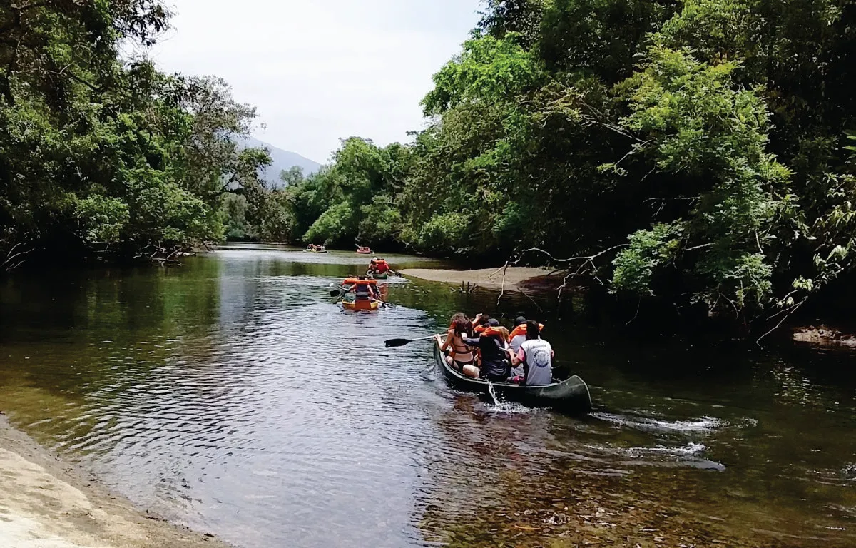 Experiência pedagógica em Unidade de Conservação litorânea, com remada orientada, leitura de paisagem e investigação ecológica em ambiente natural. Os estudantes percorrem o Rio Jaguareguava observando a transição entre manguezal e restinga, registrando fauna, flora, maré e serviços ecossistêmicos. Com metodologia ativa, diário de campo e mediação especializada, a Educar conecta ciência, conservação e currículo vivo.